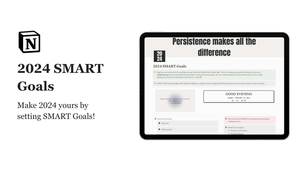 Get your 2024 SMART Goals template at $1 or if you'd like to support my work and help me create more amazing Notion templates, consider donating a little extra—your kindness means the world! 💖✨