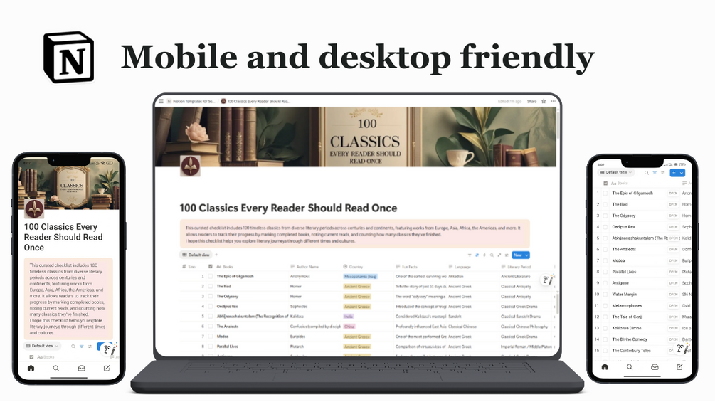 I’ve done the hard work for you. I spent weeks compiling 100 of the world's greatest classics into one organized Notion workspace. This collection spans the globe, featuring must-read classics from India, Japan, China, Nigeria, Colombia, Vietnam, and beyond.
