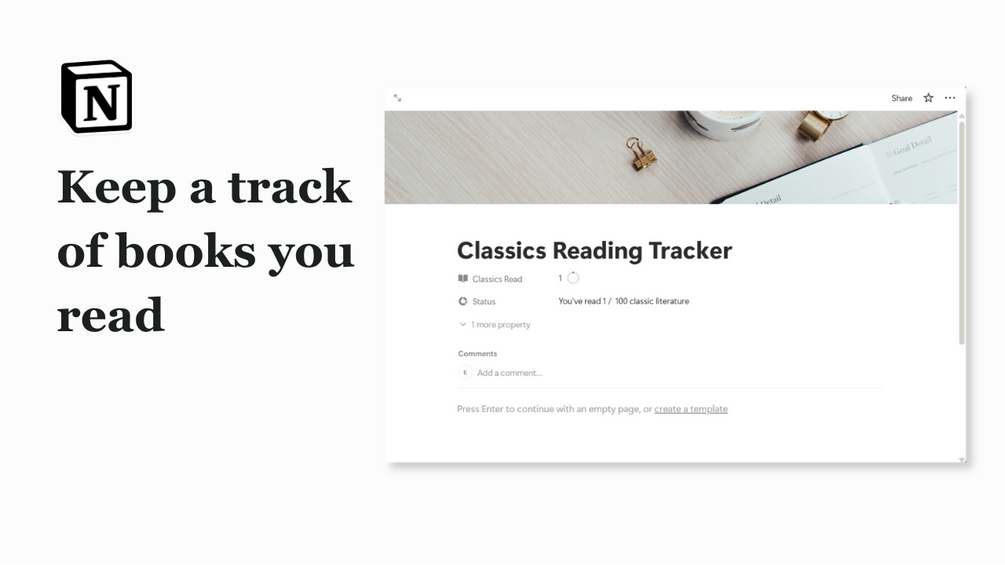 Stop losing track of what you’ve read. This Notion template turns your 2026 reading goals into an interactive experience. Add it to your workspace with one click and watch your progress grow.
